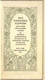 Imagine my pleasure when I came across the volume "Old Fashioned Flowers" by Maurice Maeterlinck, published in 1905. The inside of this book held some delightful surprises. The title page was an exquisite example of the Art Nouveau style of the time.